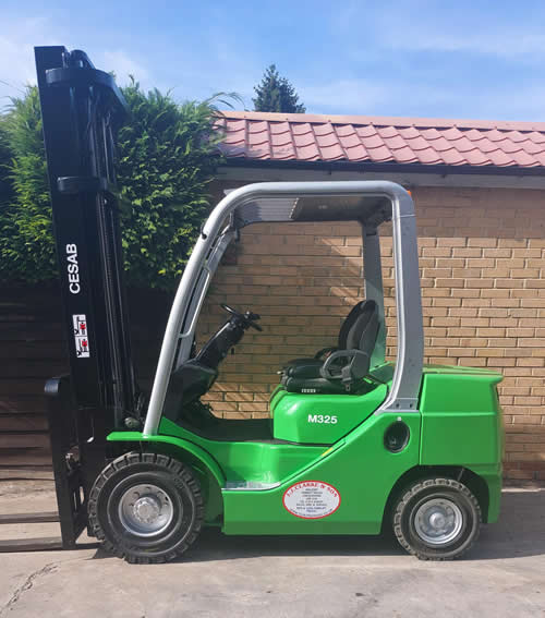 Cesab M325D DIESEL POWERED Same as a Toyota Year 2013 9562 Hours 2500 kgs lift capacity 4500mm Lift height Duplex Clear View Mast Integral Side shift New Front Tyres Reverse beeper,Beacon etc Refurbished Will come with 12 month LOLER Certificate