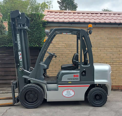 NISSAN FGD02A20Q DIESEL POWERED Year 2006 3020 Recorded Hours 3000 kgs lift capacity 4000mm Lift height Duplex clear view mast Side shift Solid Tyres Reverse beeper,Beacon etc Refurbished Will come with 12 month LOLER Certificate